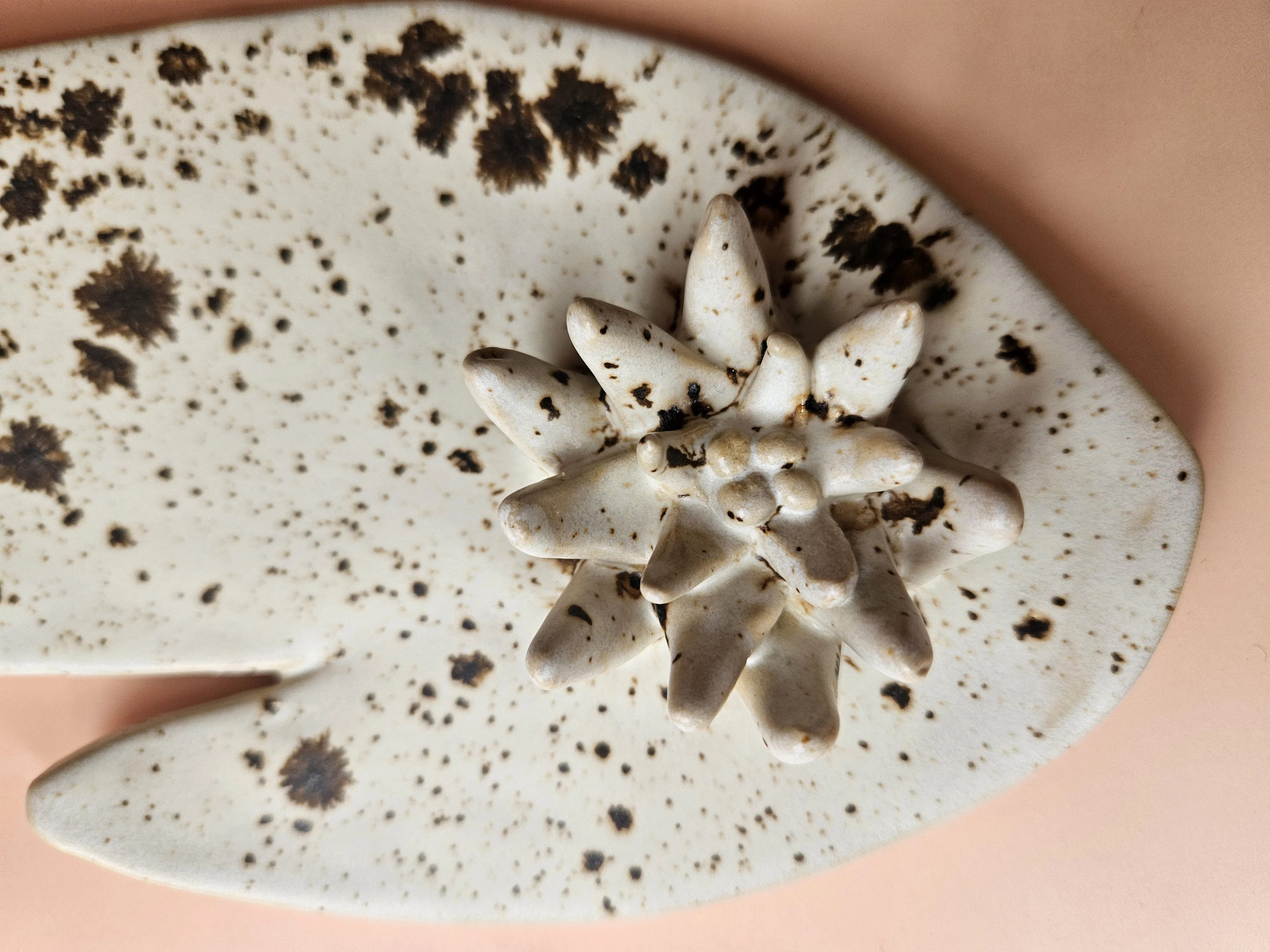 Ceramiczna kadzielnica w kształcie dłoni z kwiatem lotosu to elegancki i symboliczny przedmiot, który łączy funkcjonalność z estetyką.